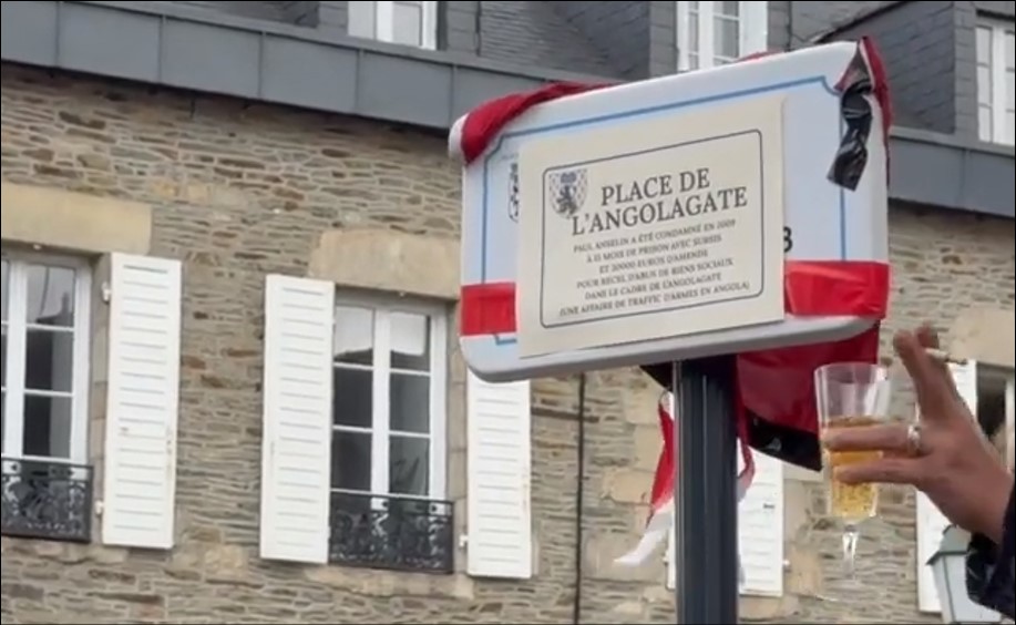 Ce 22 septembre 2025, place du Tribunal et de l’Union, la petite cérémonie menée par Patrick Le Diffon est donc l’occasion d’honorer un délinquant. L’événement n’a pas échappé à un groupe de citoyens du coin. Un mois plus tard, alors que Nicolas Sarkozy entrait en prison, une dizaine de personnes habillées humoristiquement en costard cravate ou robe de gala ont trinqué au Champomy à la santé des grands délictueux de la France. L’occasion de rebaptiser à leur tour la place Paul Anselin en Place Angolagate et montrer ainsi que les habitants du territoire n’oublient pas qui était M. Anselin.