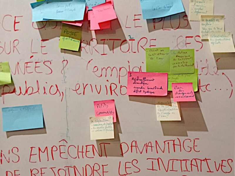 Ces jours là, la Fourmilière portait bien son nom : des temps d’échanges en petits groupes et en plénière ont permis de nommer et de valoriser les nombreuses initiatives associatives qui font vivre notre territoire(1). Les participant·es ont aussi identifié ce qui s’est dégradé ces dernières années dans nos communes, et ce qui y manque encore. L’objectif : faire naître des projets concrets, portés à la fois par les habitant·es et les collectivités.