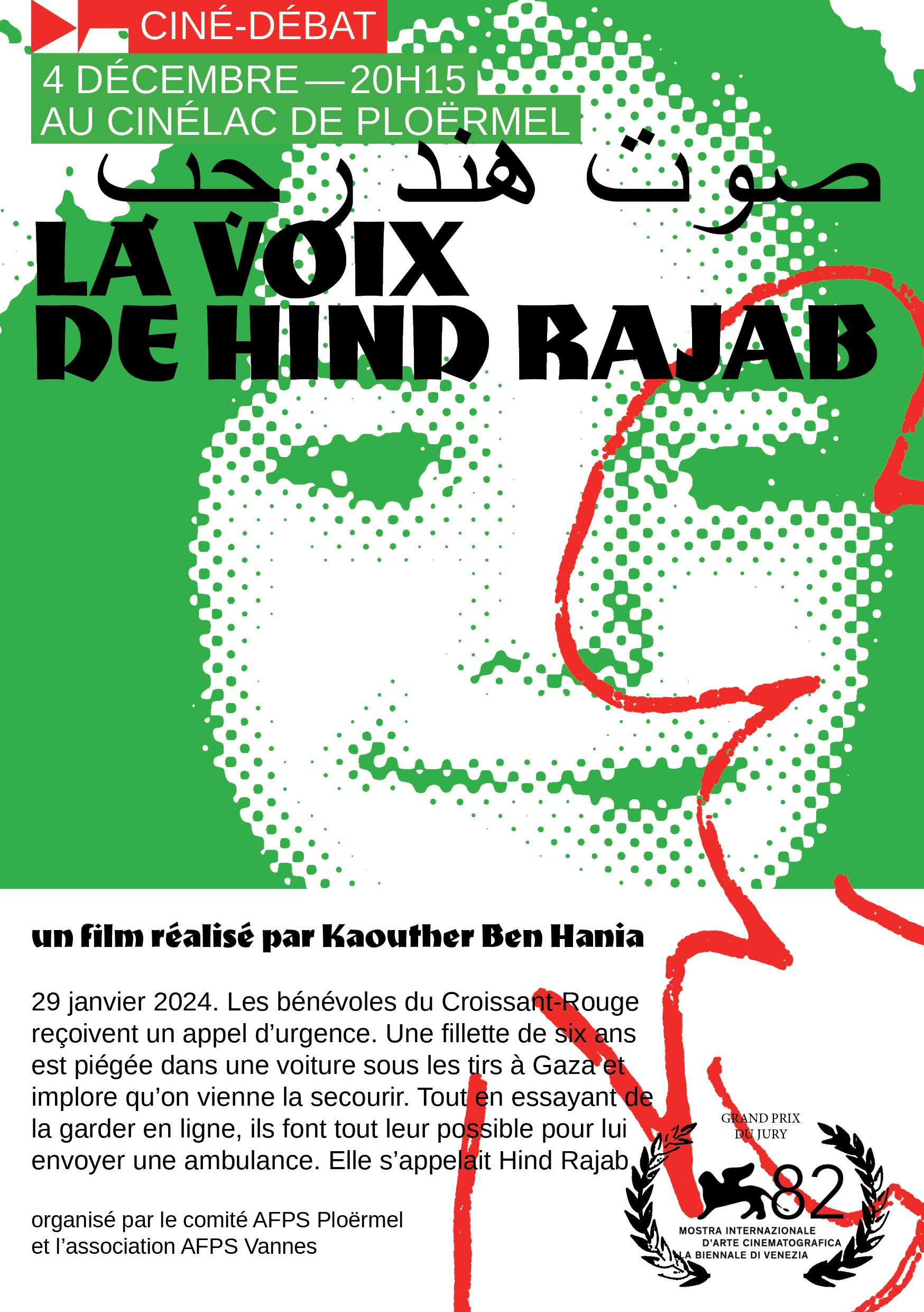 Ciné-débat : « La Voix d’Hind Rajab » avec l’association France Palestine Solidarité 56
