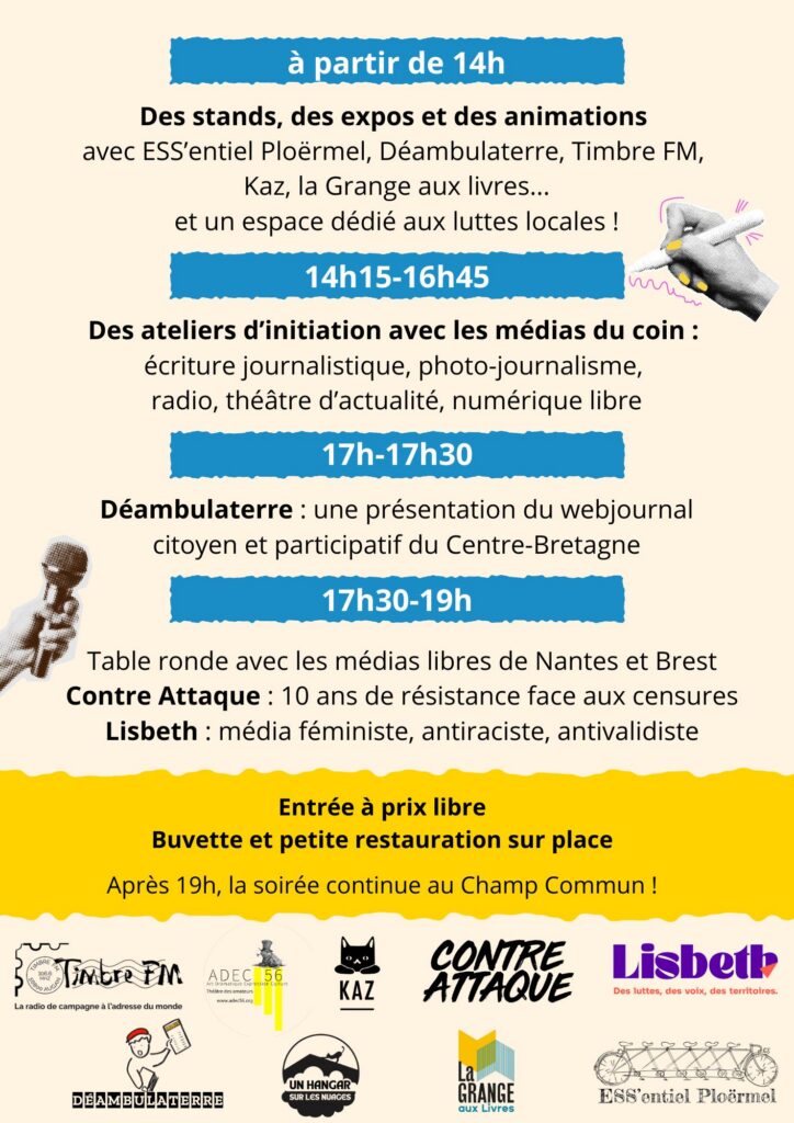En automne 2026, Déambulaterre, ESS’entiel Ploërmel et de nombreux partenaires associatifs locaux ont organisé le premier Festival des médias libres en Brocéliande. L’objectif : défendre les médias libres et indépendants face à l’offre d’informations dominante conformiste et redondante dont la propriété est hyper concentrée entre les mains d’une poignée de milliardaires. Face au succès de cette première édition, d’autres verront surement le jour…